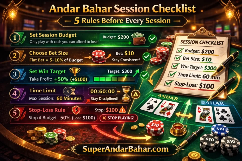 Before every Andar Bahar session, answer these five questions. If you cannot confidently answer all five, do not play yet.